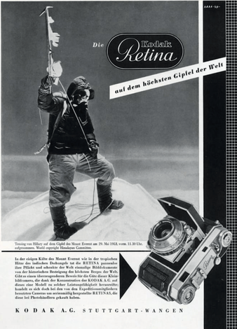 Das historische Bild von der Erstbesteigung wurde mit einer Kodak Retina 118 gemacht. In der Kodak Anzeige von 1953 wurde dagegen eine Retina IIa (Typ 016) abgebildet, da dies das aktuelle Modell zu jener Zeit war und Kodak den Verkauf